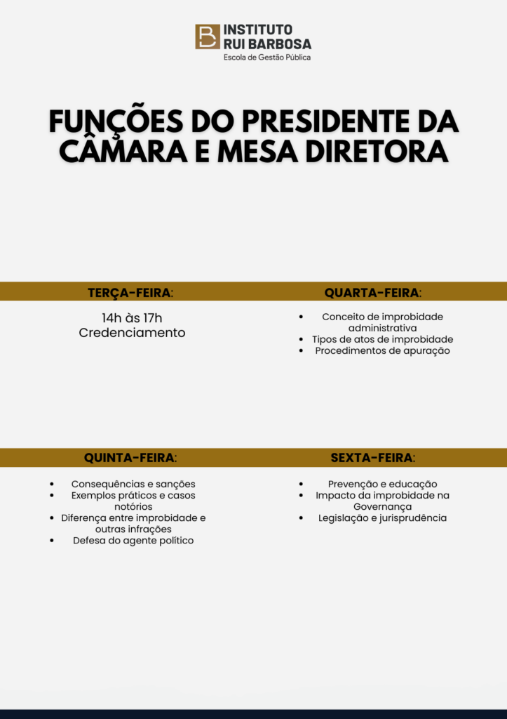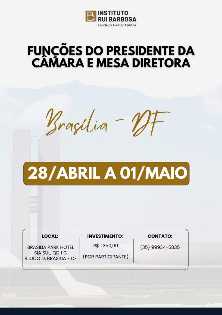 Funções do presidente da Câmera e Mesa Diretora | 28/Abril a 01/Maio – Brasília/DF
