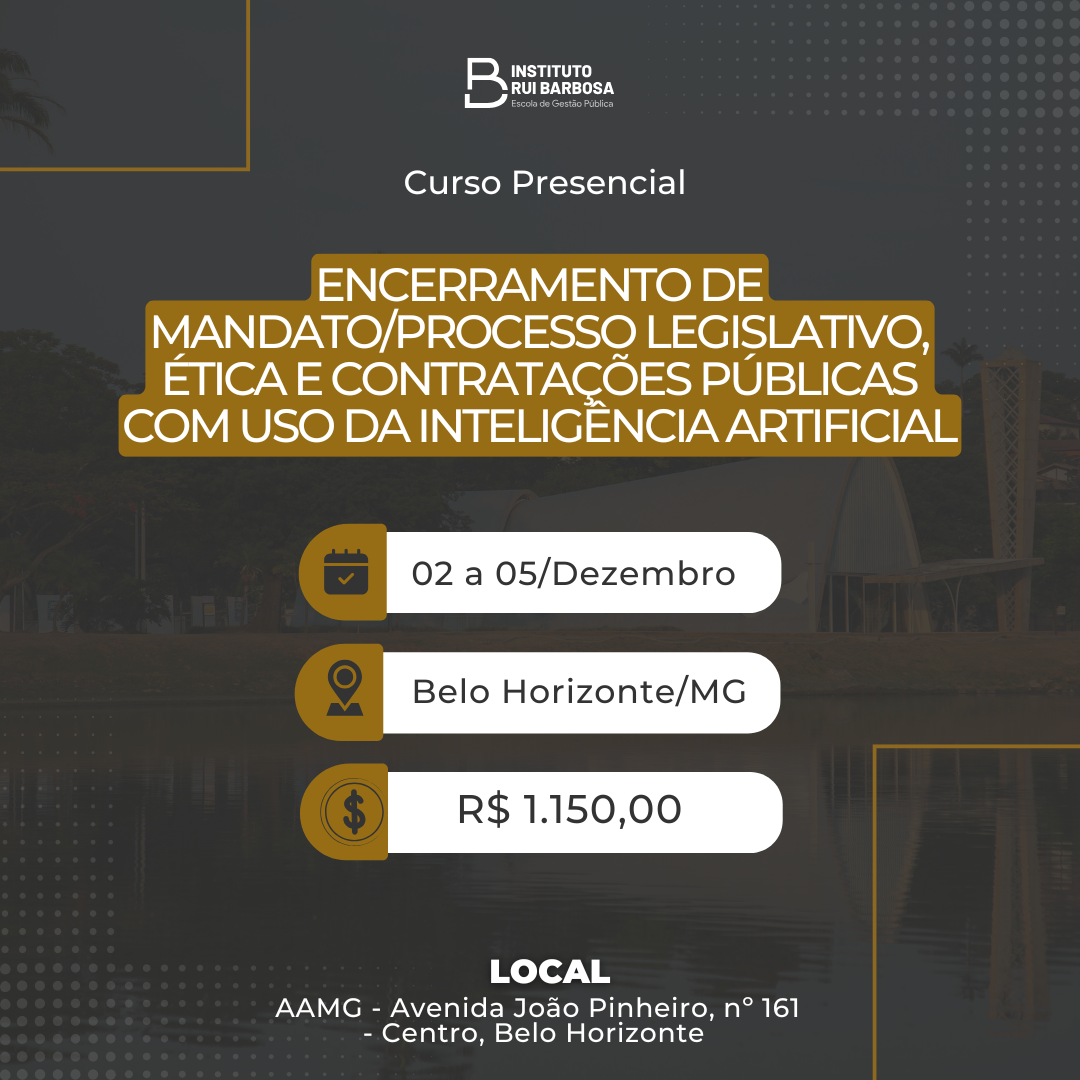 Encerramento de mandato/ Processo Legislativo, ética e contratações públicas com uso de IA | 02 a 05/Dezembro – Belo Horizonte/MG Programação: