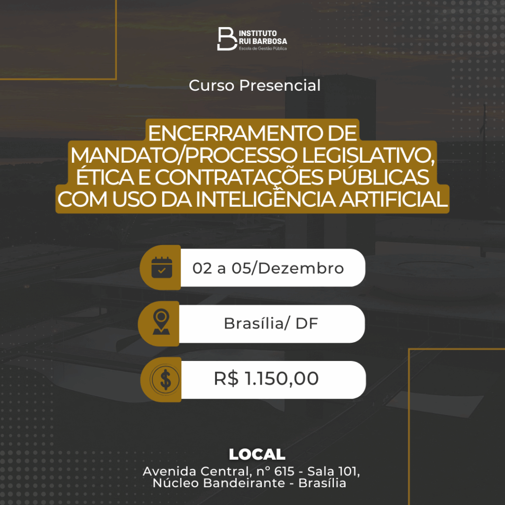 Encerramento de mandato/ Processo Legislativo, ética e contratações públicas com uso de IA | 02 a 05/Dezembro – Brasília/DF