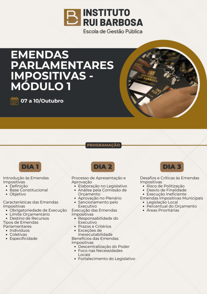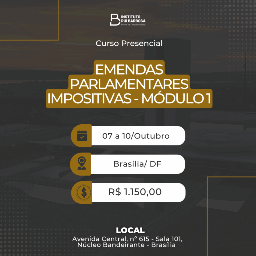 Emendas parlamentares impositivas (Módulo 1) | 07 a 10/outubro – Brasília/DF