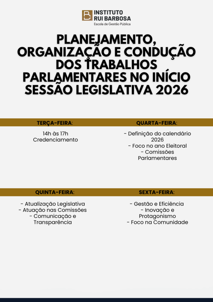 Planejamento, organização e condução dos trabalhos parlamentares no início sessão Legislativa 2026 | 03 a 06/Fevereiro – Brasília/ DF
