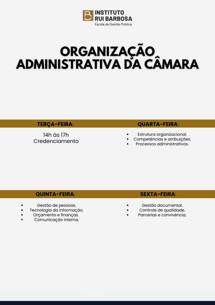Organização administrativa na Câmara | 12 a 15/Maio – Brasília/DF