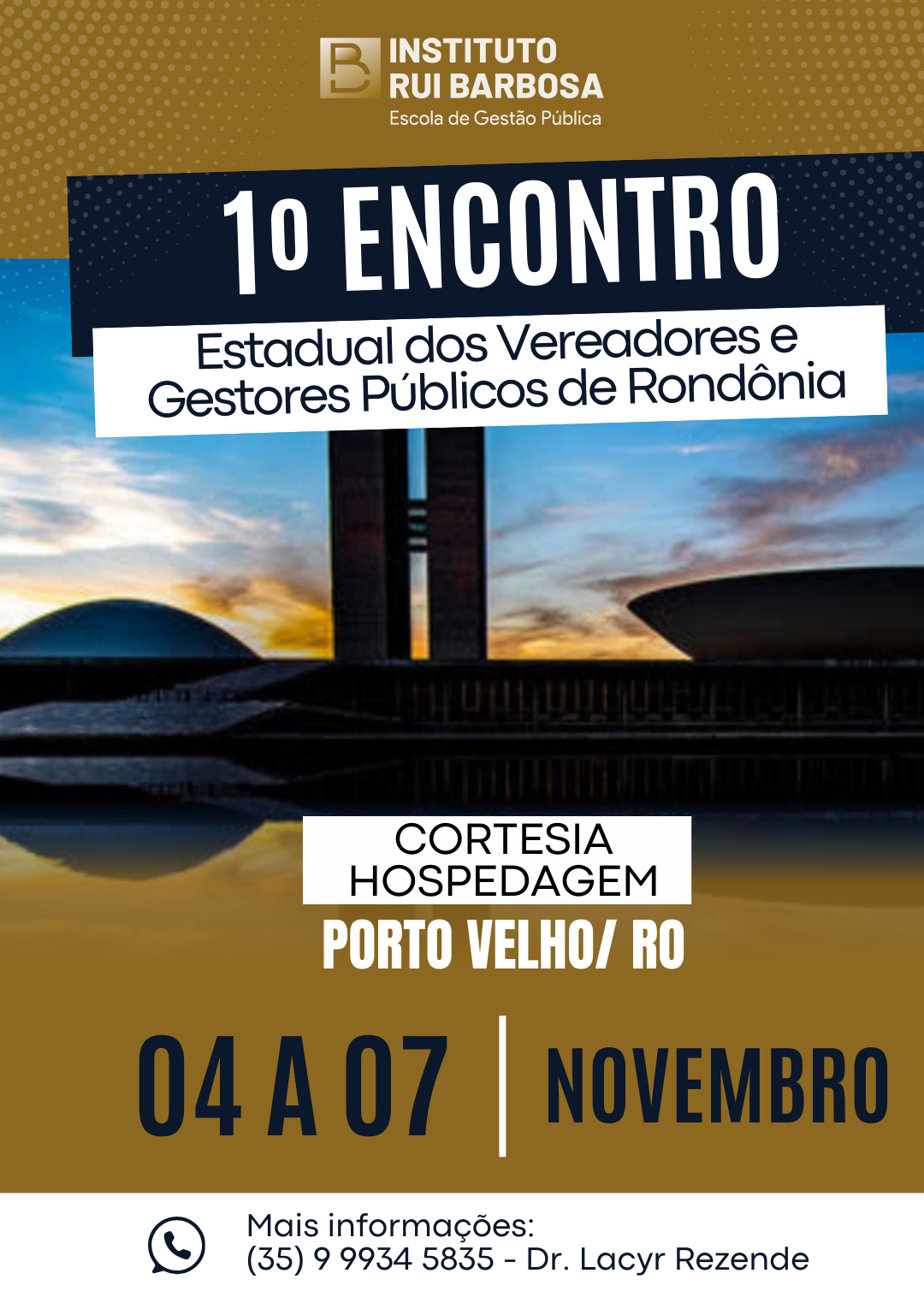 1º Encontro Estadual dos Vereadores e Gestores Públicos de Rondônia | 04 a 07/Novembro – Porto Velho/Ro Programação: